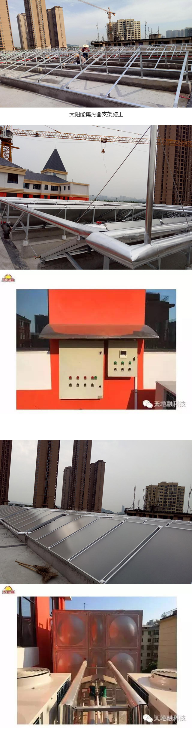 工程介紹:藍(lán)頂紅墻,這是有著童話般感覺的小學(xué),開福區(qū)金灣小學(xué)是開福教育推出的又一精品力作,于2016年9月開學(xué),這是由長(zhǎng)沙金霞經(jīng)濟(jì)開發(fā)區(qū)投資近5000萬元建設(shè)的高品質(zhì)、高標(biāo)準(zhǔn)、現(xiàn)代化的小學(xué),學(xué)校占地面積23畝,辦學(xué)規(guī)模30個(gè)班。該太陽(yáng)能熱水項(xiàng)目為平板太陽(yáng)能空氣源熱泵熱水系統(tǒng)工程。利用太陽(yáng)能熱水系統(tǒng)給學(xué)校食堂提供生活熱水,滿足學(xué)校師生熱水需求,本系統(tǒng)采用集中集熱—集中儲(chǔ)熱—集中供熱水系統(tǒng),集熱器統(tǒng)一架設(shè)在樓頂屋面上,同時(shí)在屋頂設(shè)置1個(gè)儲(chǔ)熱水箱,安裝2臺(tái)空氣源熱泵作為輔助熱源,集熱管路采用304衛(wèi)生級(jí)不銹鋼管;系統(tǒng)運(yùn)行原理集熱器加熱:當(dāng)T1-T2≥7℃時(shí),1#泵(熱水循環(huán)泵)啟動(dòng);當(dāng)T1-T2≤3℃時(shí),1#泵(熱水循環(huán)泵)關(guān)閉。防凍功能啟動(dòng):當(dāng)集熱器內(nèi)部溫度低于4度時(shí),啟動(dòng)循環(huán)泵將儲(chǔ)水箱內(nèi)的水循環(huán)到集熱器內(nèi)進(jìn)行解凍,或采取排空的方法防凍;輔助熱源啟動(dòng):當(dāng)T4溫度低于55℃啟動(dòng)輔助熱源(空氣源)。工程現(xiàn)已全部竣工投入使用,得到了廣大師生的一致好評(píng)。