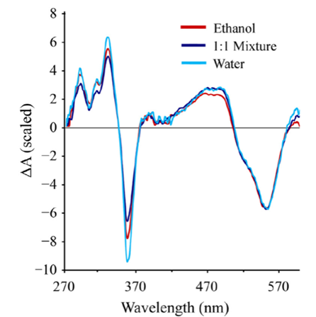 另外一個有意思的應用是密歇根大學(the University of Michigan)發(fā)表的關于氰鈷胺激發(fā)態(tài)在生物系統(tǒng)中的作用[3]。如圖6所示,他們使用Avantes的光譜儀測試不同溶劑對電子躍遷的影響。研究小組使用這些實驗數(shù)據驗證了他們研發(fā)的復雜量子力學模型的作用,并為進一步研究可以用作作抗維生素、光活性藥物傳遞劑和原位產生烴基自由基的鈷胺素輔酶因子奠定了基礎。
