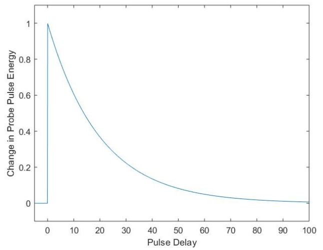 使用超快激光進行瞬態(tài)吸收光譜測試有許多不同的方法,基本上依據泵浦探針。該方法需要兩束激光同時激發(fā)分析物并測量吸光度。首先,高強度的泵浦激光激發(fā)樣品中的部分分子到更高的能級,從而改變了分子的居數(shù)差,降低了躍遷的吸收系數(shù)。然后,通過低強度的探針激光通測量樣品吸收。通過計算有無泵浦激光時探針激光的吸收差值,就可以確定吸收的變化。然后根據泵浦脈沖與探針脈沖的不同延遲時間系統(tǒng)重復此過程,測量發(fā)射探針脈沖能量的變化,如圖2所示。從這些數(shù)據,我們現(xiàn)在可以建立能級躍遷動力學的圖像,并確定自發(fā)壽命和其他瞬態(tài)效應。